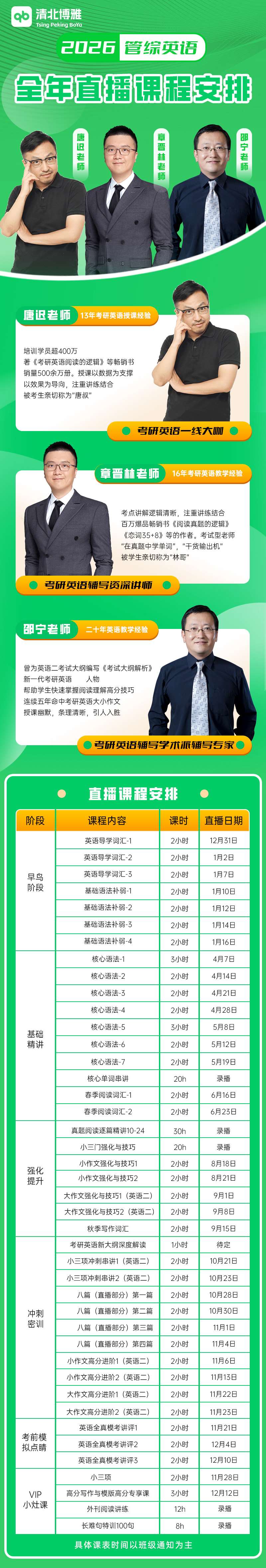 清北博雅教育集團(tuán)2010年成立于北京大學(xué)資源大廈,是一家專注于全國研究生入學(xué)考試考前輔導(dǎo)的專業(yè)教育機(jī)構(gòu)。自成立以來,清北博雅一直致力于為廣大考生提供全面、系統(tǒng)的培訓(xùn)輔導(dǎo)服務(wù),助力每一位學(xué)員實(shí)現(xiàn)自己的學(xué)術(shù)夢想。為了更好地服務(wù)于全國各地的學(xué)生,清北博雅已經(jīng)成立了多家分公司,其中包括武漢清北博雅和深圳清北博雅,以此來擴(kuò)大其影響力和服務(wù)范圍。清北博雅的服務(wù)范圍廣泛,覆蓋了研究生入學(xué)考試的各個(gè)科目,包括但不限于英語、數(shù)學(xué)、政治等公共課程,以及各類專業(yè)的輔導(dǎo)課程。我們不僅注重理論知識(shí)的傳授,更強(qiáng)調(diào)實(shí)戰(zhàn)技巧的應(yīng)用,力求讓每位學(xué)員都能在考試中取得優(yōu)異分?jǐn)?shù)。WHY US/選擇我們“以提升學(xué)員分?jǐn)?shù)為核心"我們的師資隊(duì)伍匯集了行業(yè)內(nèi)資深老師,其中包括陳劍、孫勇、陳君華以及唐遲等多位知名講師。這些教師不僅擁有深厚的學(xué)術(shù)功底,還積累了豐富的教學(xué)經(jīng)驗(yàn),能夠準(zhǔn)確把握考試動(dòng)態(tài),提供有針對(duì)性的教學(xué)策略,幫助學(xué)生有效提升分?jǐn)?shù)。清北博雅還積極引入現(xiàn)代化的教學(xué)手段和技術(shù),如在線直播課程、智能題庫系統(tǒng)等,以滿足不同學(xué)員的學(xué)習(xí)需求。此外,清北博雅還推出了5v1服務(wù)模式,即每位學(xué)員都將獲得由五位老師組成的團(tuán)隊(duì)支持,涵蓋教學(xué)、學(xué)習(xí)規(guī)劃、答疑、心理輔導(dǎo)等多個(gè)方面,確保每位學(xué)員都能夠得到個(gè)性化的關(guān)注和幫助。我們相信,通過持續(xù)的努力和創(chuàng)新,為更多學(xué)子的成功之路鋪設(shè)堅(jiān)實(shí)的基石。在未來的發(fā)展道路上,清北博雅將繼續(xù)秉承“以學(xué)生為中心”的理念,不斷提升教學(xué)質(zhì)量和服務(wù)水平,努力成為廣大考生心目中值得信賴的教育品牌。集團(tuán)宗旨/GROUP PURPOSE清北博雅教育集團(tuán)始終以"創(chuàng)新教學(xué)方法、扎實(shí)課程體系,助力考研學(xué)子圓夢研究生"為宗旨,不僅提供優(yōu)質(zhì)、高效、有針對(duì)性的課程,更強(qiáng)調(diào)知識(shí)轉(zhuǎn)變?yōu)閷W(xué)習(xí)過程中的引導(dǎo)和服務(wù),關(guān)注學(xué)習(xí)產(chǎn)品的動(dòng)機(jī)和效率,以及教研內(nèi)容的針對(duì)性。使命愿景/MISSION VISION清北博雅將繼續(xù)秉承"探索、創(chuàng)新、優(yōu)質(zhì)"的教育理念,不斷追求杰出的教育方法。緊密關(guān)注考研教育的全新動(dòng)態(tài)和發(fā)展趨勢,立即調(diào)整和優(yōu)化教學(xué)策略。同時(shí),加大研發(fā)投入,引進(jìn)更先進(jìn)的教學(xué)技術(shù)和方法,為學(xué)生提供更多樣、更元化的學(xué)習(xí)體驗(yàn)。